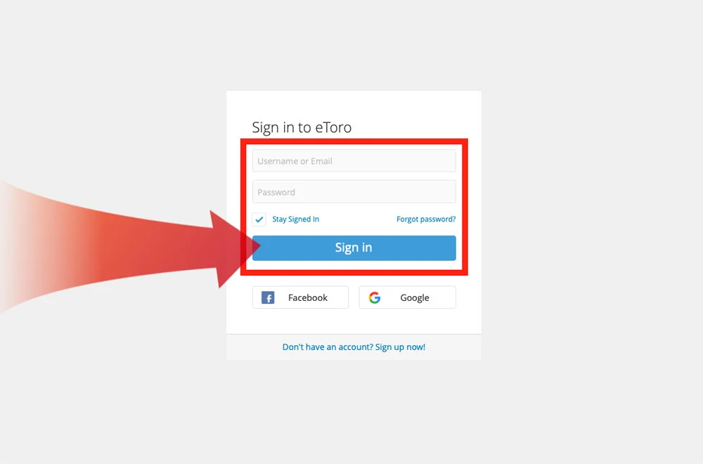 Første trin er at åbne din eToro-konto. Følg dette link, udfyld oplysningerne og klik på “Start Trading“! →