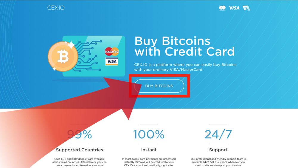 Ensimmäinen vaihe on vierailla CEX.IO -kauppapaikassa. Seuraa tätä linkkiä alla olevalle sivulle ja klikkaa ”BUY BITCOINS”! →