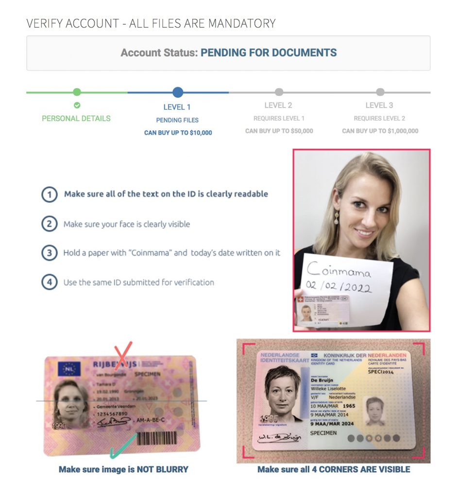 The first step is to open an account at Coinmama. Fill in your email, first and last name, password, and country of residence. That’s all that’s needed! You will then receive an e-mail to confirm your information. Click here to open an account.