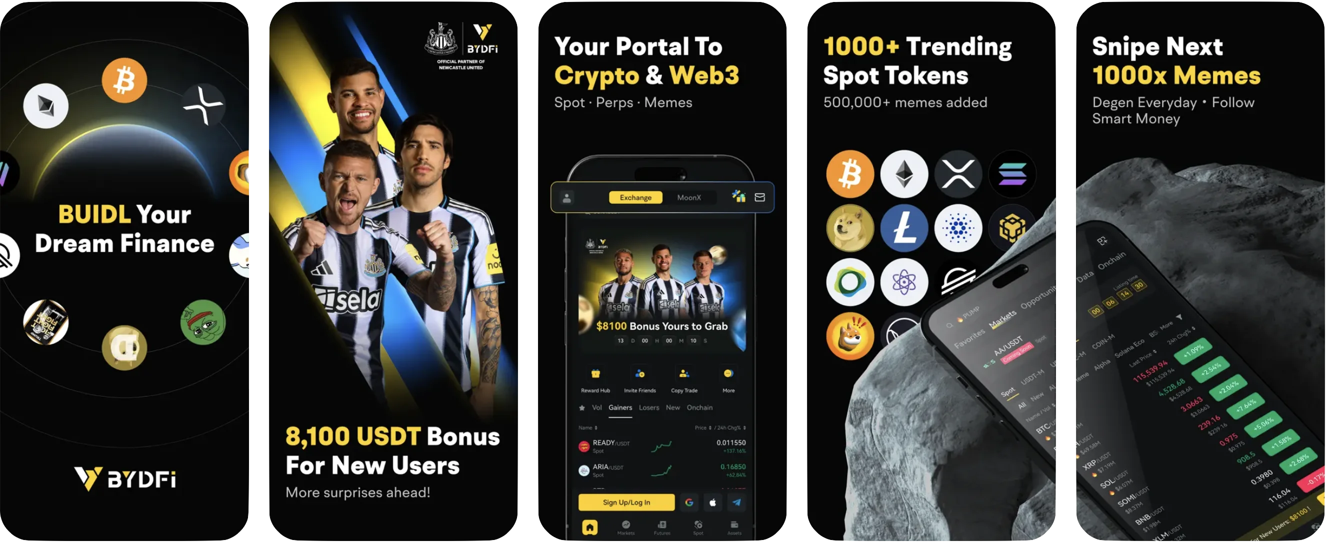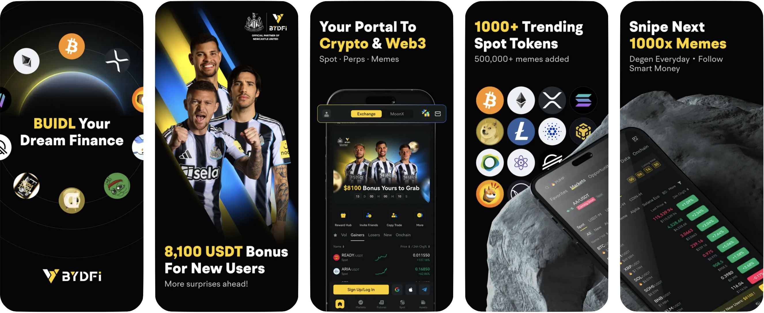 BYDFi is mainly used to buy, sell, and trade cryptocurrencies. You can trade spot, futures with leverage, use copy trading, trading bots and even access on-chain tokens via MoonX.