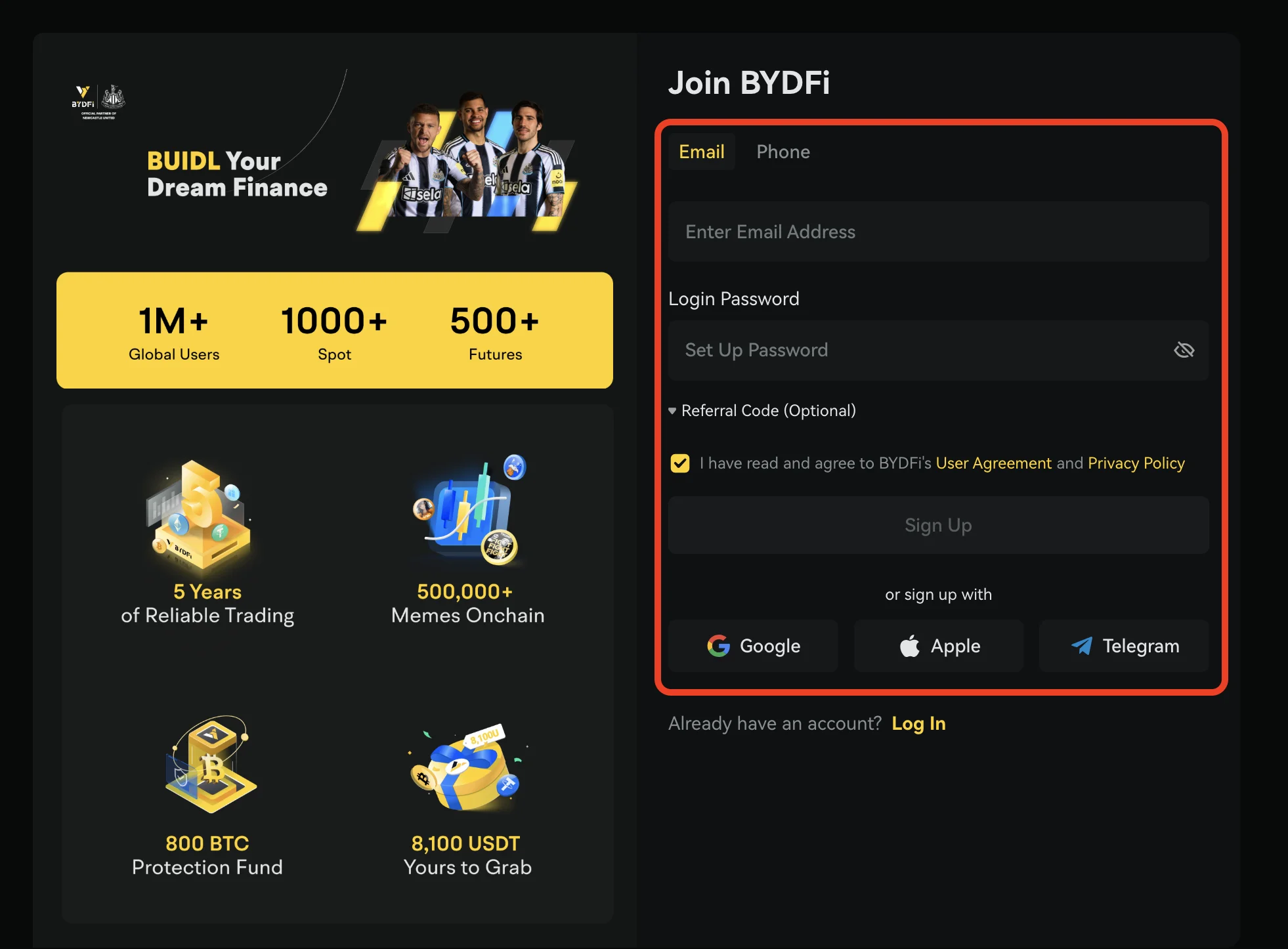 In this section, we guide you through how to open a BYDFi account. We will also walk you through how to place your first trade on the platform. The registration process only takes around 5 minutes to finish.