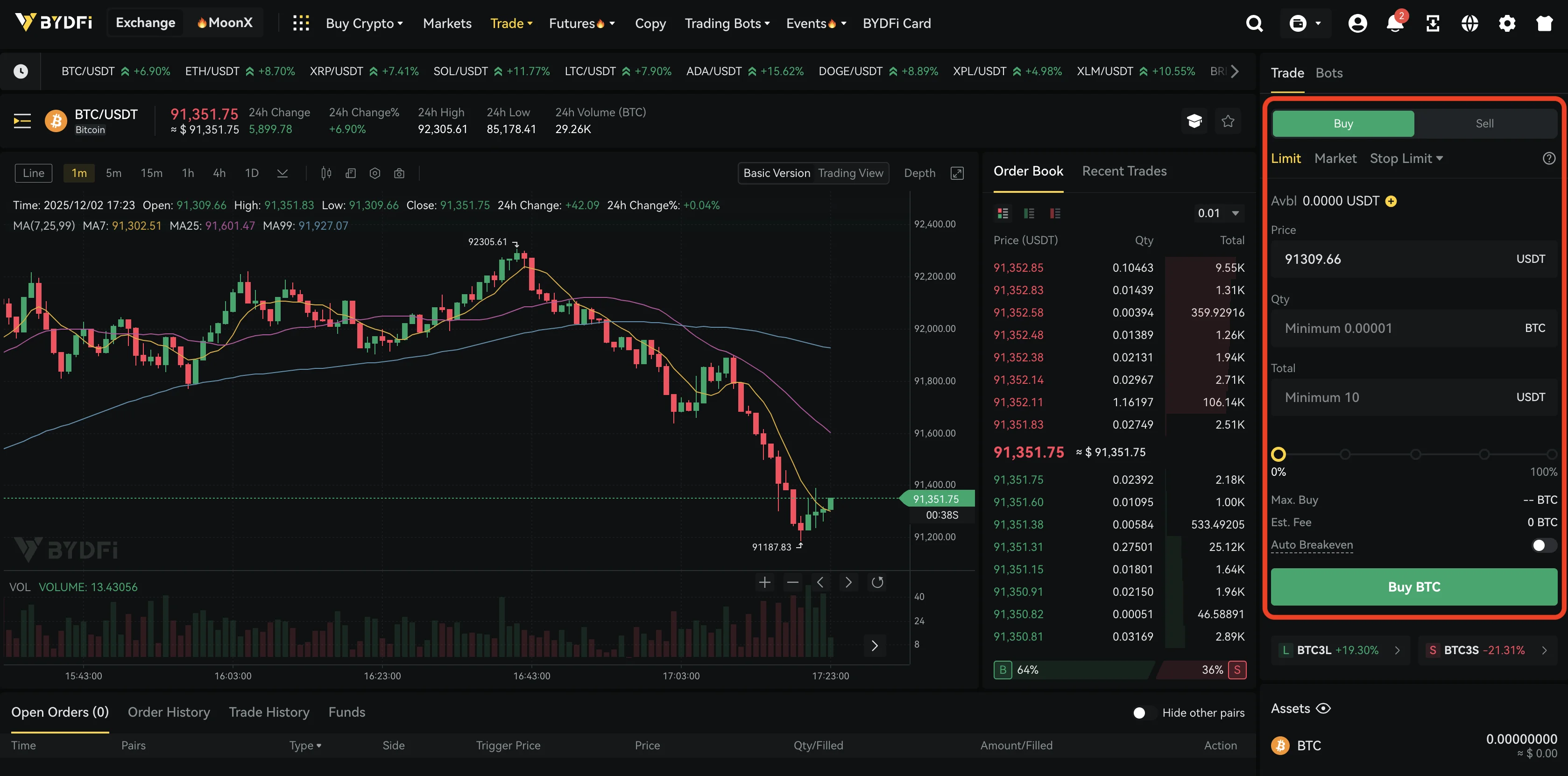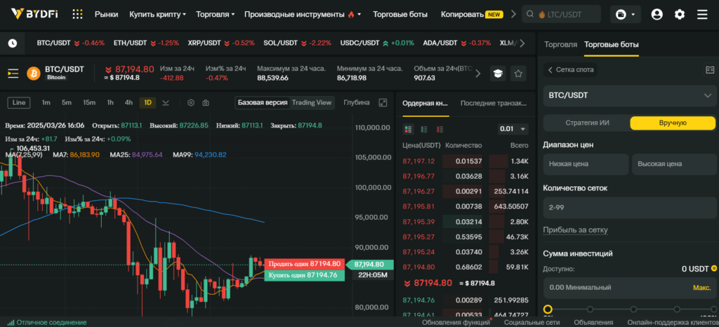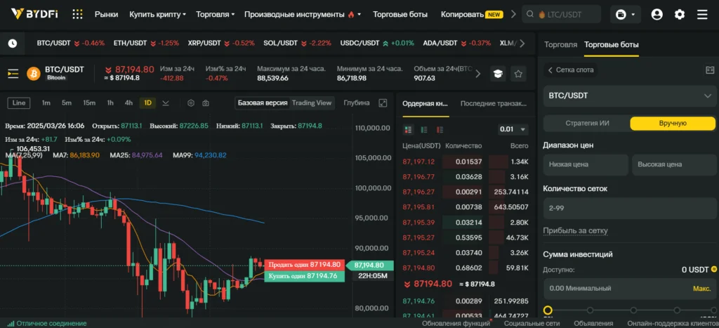 Spot trading is the easiest way to get started with BYDFi. When you trade on the spot market, you buy and sell real cryptocurrencies that are added directly to your account balance. For example, if you buy BTC/USDT on the BYDFi exchange, you receive actual BTC that you can hold, trade later, or withdraw to an external wallet.