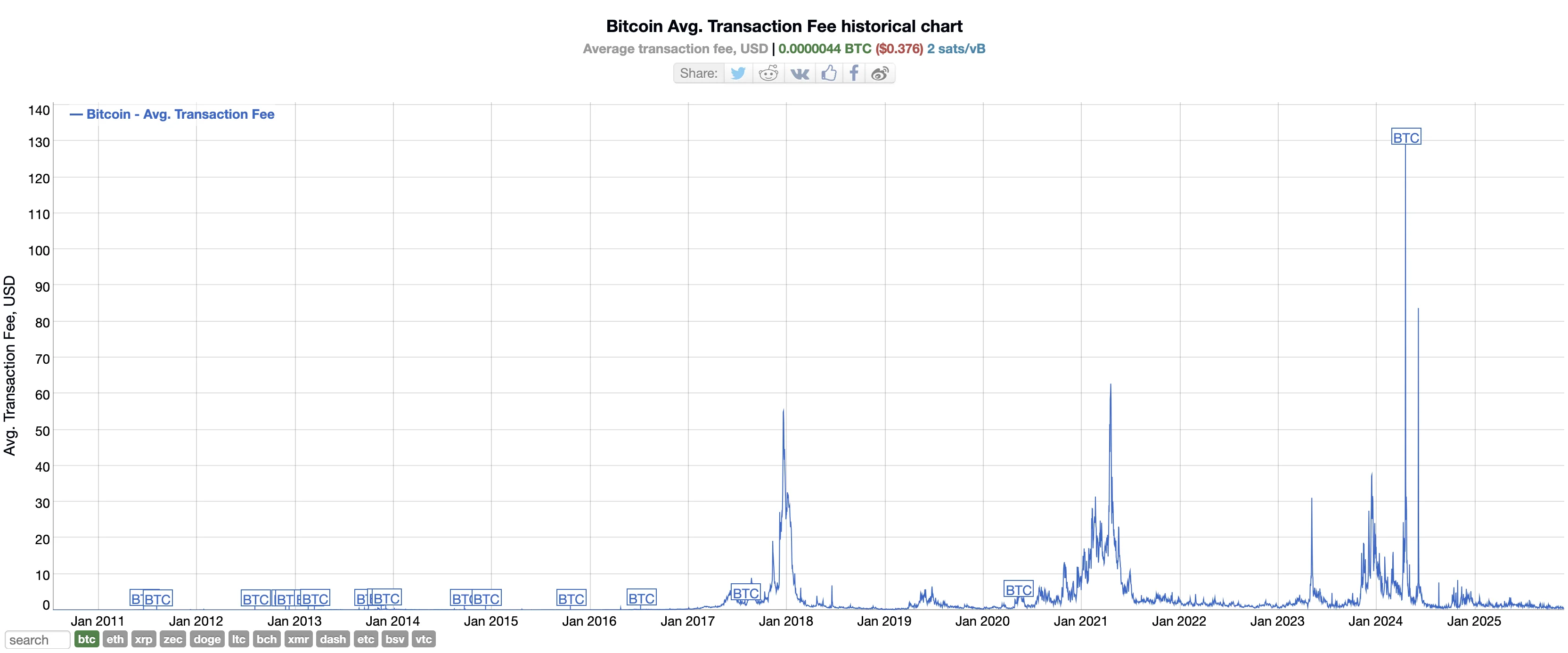 BTC historical network fee: