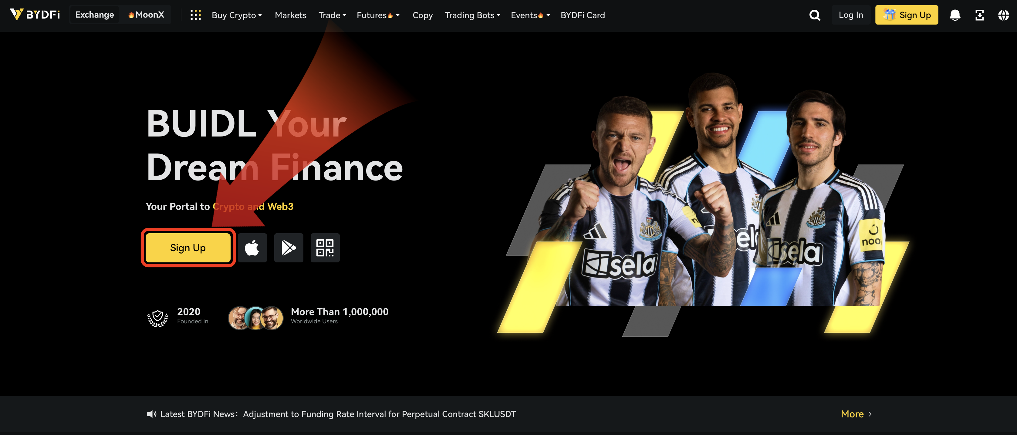 Start by visiting BYDFi’s website. Use this link to get there and click on “Sign Up” to begin.