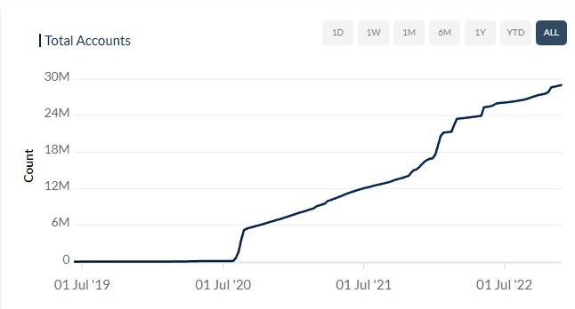 Som grafen nedan visar var det nästan 30 miljoner plånböcker aktiverade i slutet av 2022.