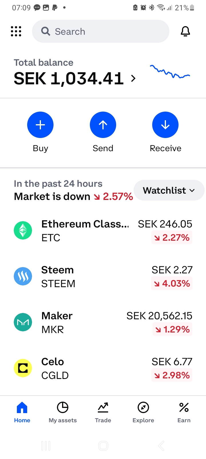 Via Coinbase app är det enkelt att köpa och sälja kryptovaluta direkt med Coinbase som motpart. Det är även möjligt att genomföra en ”swap”, vilket betyder att en kryptovaluta växlas mot en annan. En smidig funktion som gör att du undviker dubbla avgifter (sälj + köp).