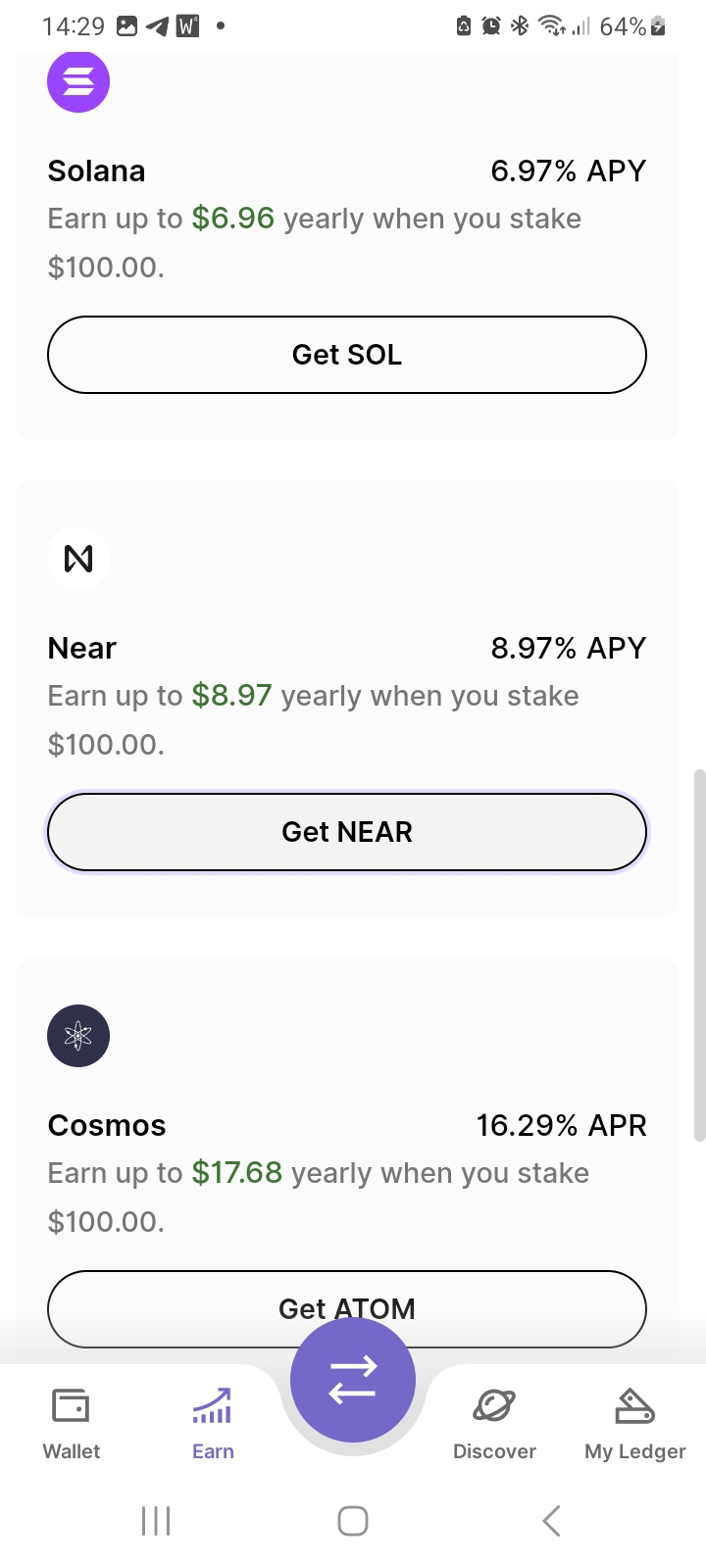 Få högsta möjliga avkastning via staking genom att ansluta din ledger direkt till blockkedjornas olika stakingfunktioner. Detta till skillnad mot apparna som presenteras ovan där en tredjepart tar en viss del av avkastningen.