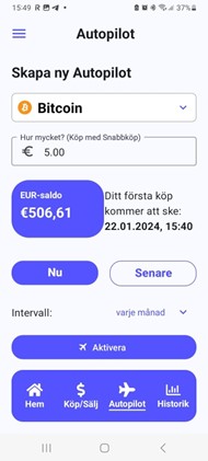 Skapa ett automatiskt sparande i olika kryptovalutor. Välj mellan att köpa varje dag, varje vecka, två gånger i månaden eller en gång i månaden.