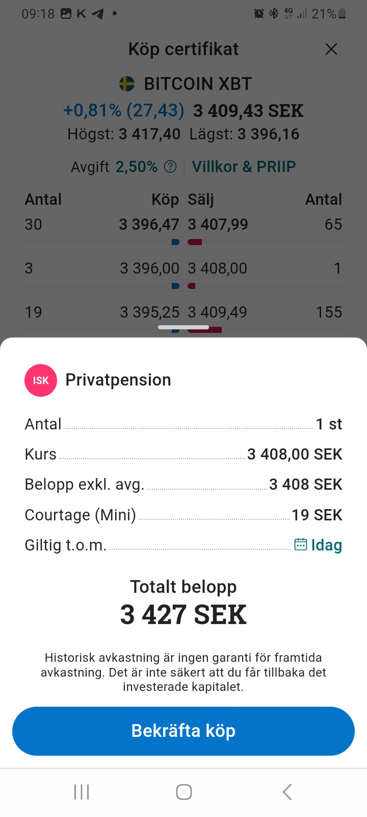 Det unika med Avanza, i förhållande till de kryptoappar som presenteras ovan, är att handel i kryptovalutor sker via certifikat och att dessa kan handlas inom ett ISK.