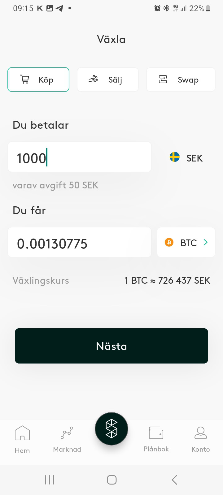 Safello - Bästa kryptovaluta app för Swishbetalning