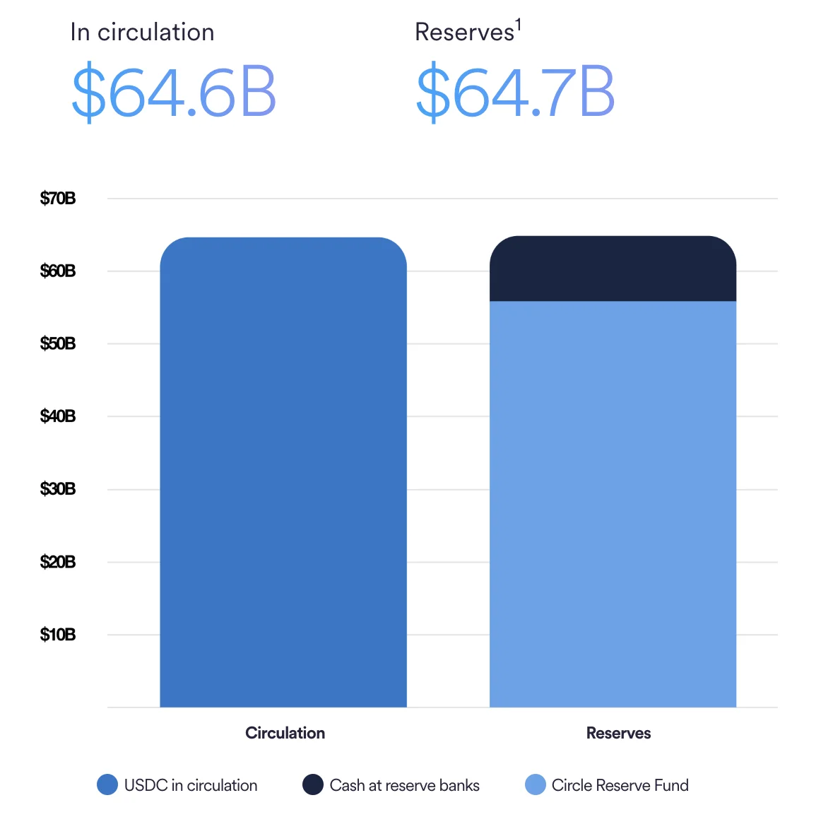 USDC är, i likhet med USDT, en stablecoin vars värde förväntas vara 1 USD. Den hette från början USD Coin men har bytt namn till USDC. Lanseringen, år 2018, var på Ethereums blockkedja och sedan dess har USDC även implementerats på ett flertal andra blockkedjor, exempelvis Algorand, Solana och Polygon.