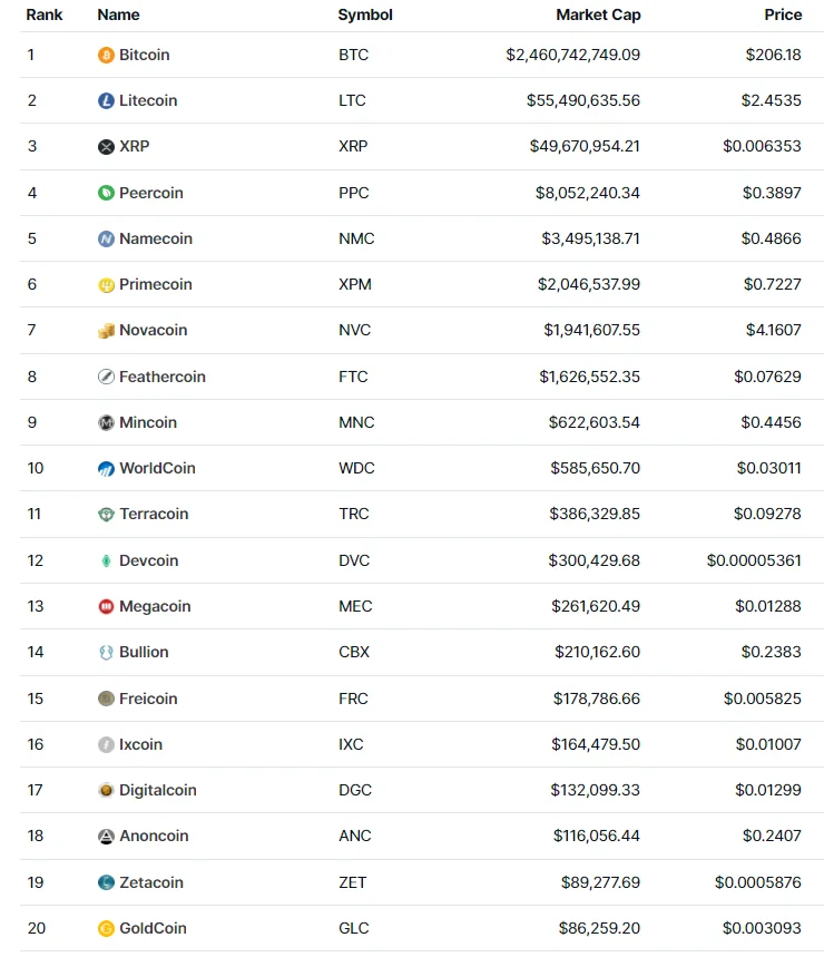 | 3 | Ripple (XRP) | 2012 | Ca 194 000 000 000 |