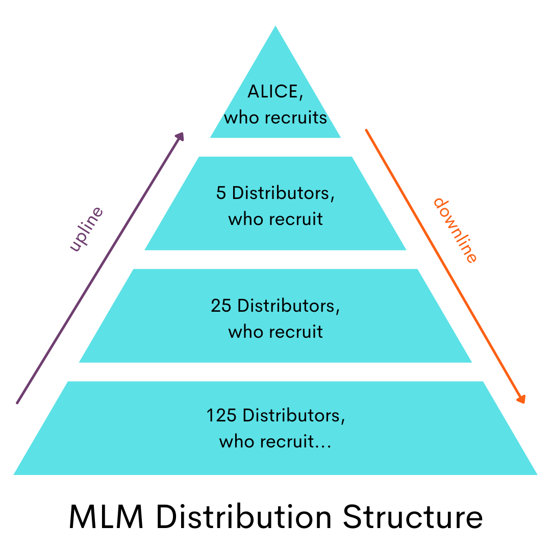 Exempel: På en lunchrast börjar en kollega prata med Anna om hur hon börjat med ett extrajobb. Kollegan säger att det ger lite extra varje månad men att det kommer att växa kraftigt bara inom ett år. När Anna frågar mer svarar kollegan ganska luddigt och säger istället att Anna kan följa med på nästa möte.