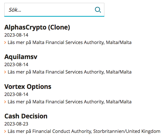 Det går exempelvis att använda sökfunktionen och kontrollera “Bitcon Era”. I detta fall kommer varningar att visas från myndigheterna från Italien, Nya Zeeland, Frankrike och Spanien varnar för detta varumärke.