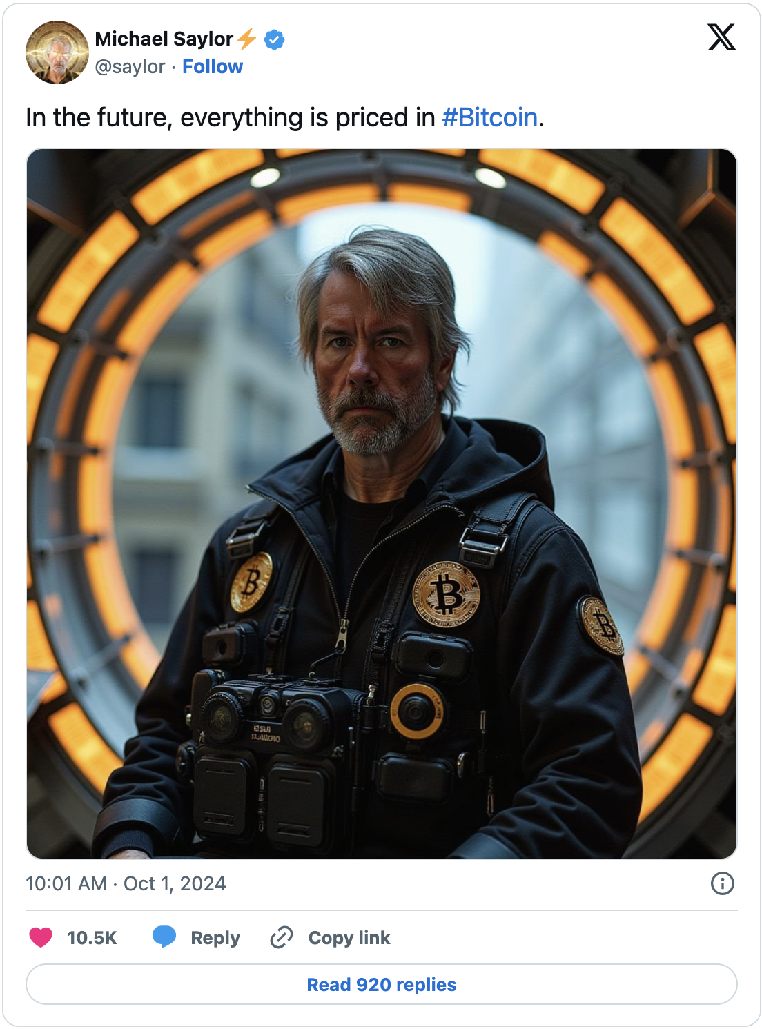 Slutligen tror Saylor att allt traditionellt kapital kommer att uppslukas av Bitcoin. Då kan det bli aktuellt att vi i vår vardag börjar prissätta saker i BTC.