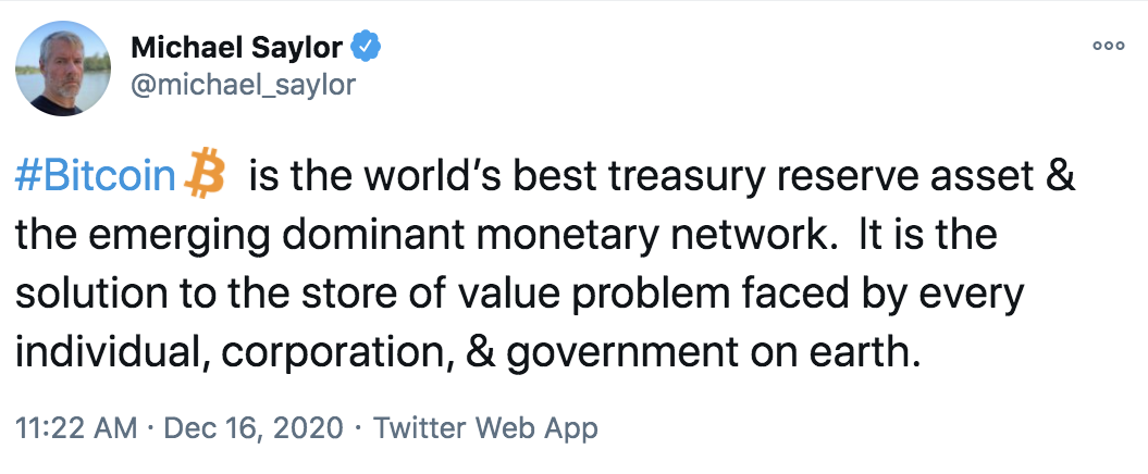 - Centralbanker – Slutligen tror Saylor att det kommer att bli aktuellt för centralbanker att investera i Bitcoin. Det primära syftet med detta beslut kommer vara att Bitcoin ska fungera som en reservvaluta.