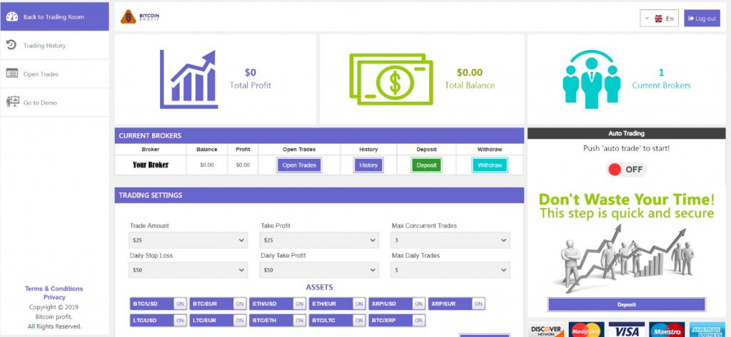 Bitcoin Profit skriver enbart att det är automatiserad handel men utan att förklara hur detta sker eller via vilka handelsplatser detta sker.