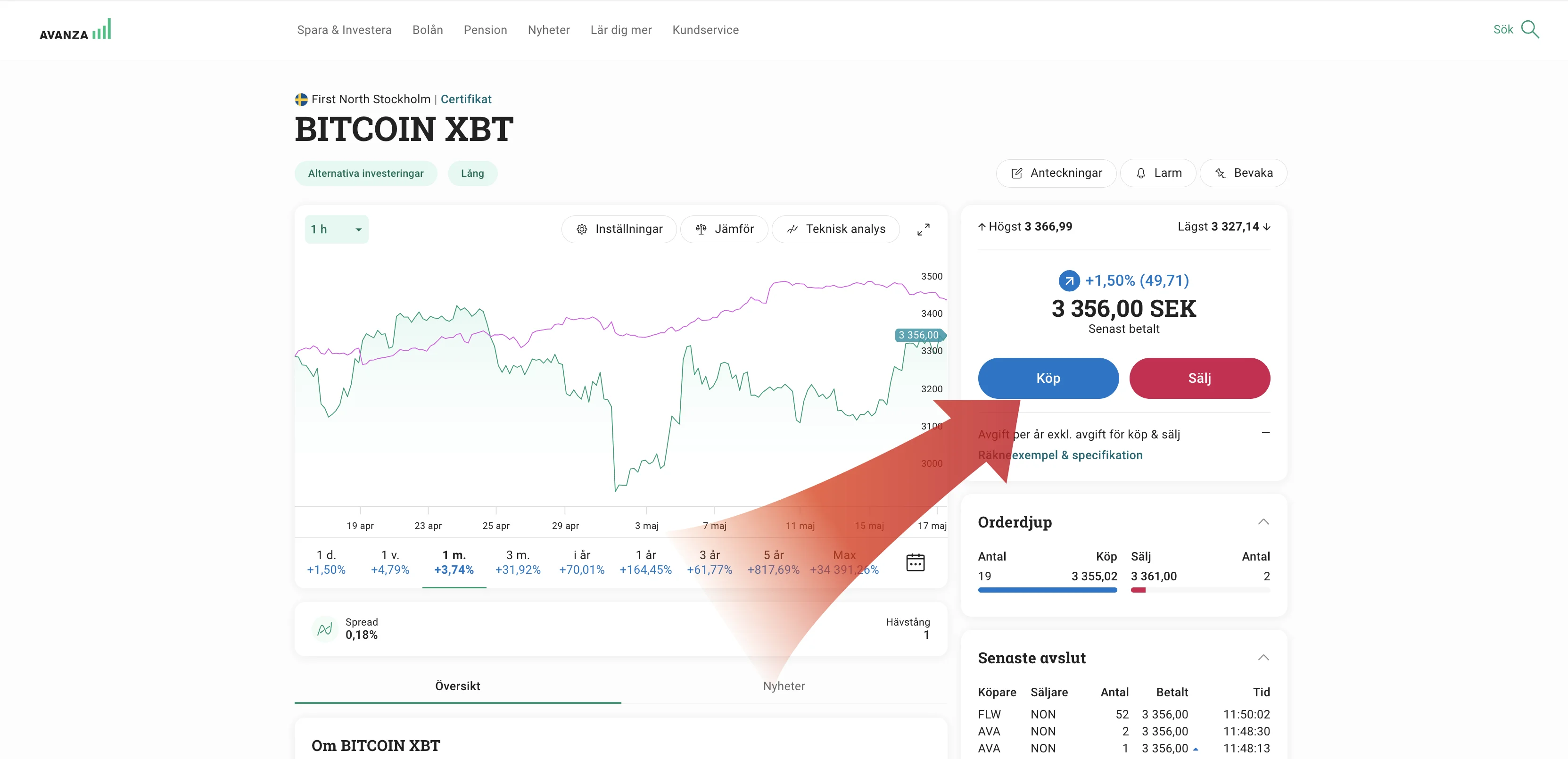 Bitcoin XBT webbsida Avanza: