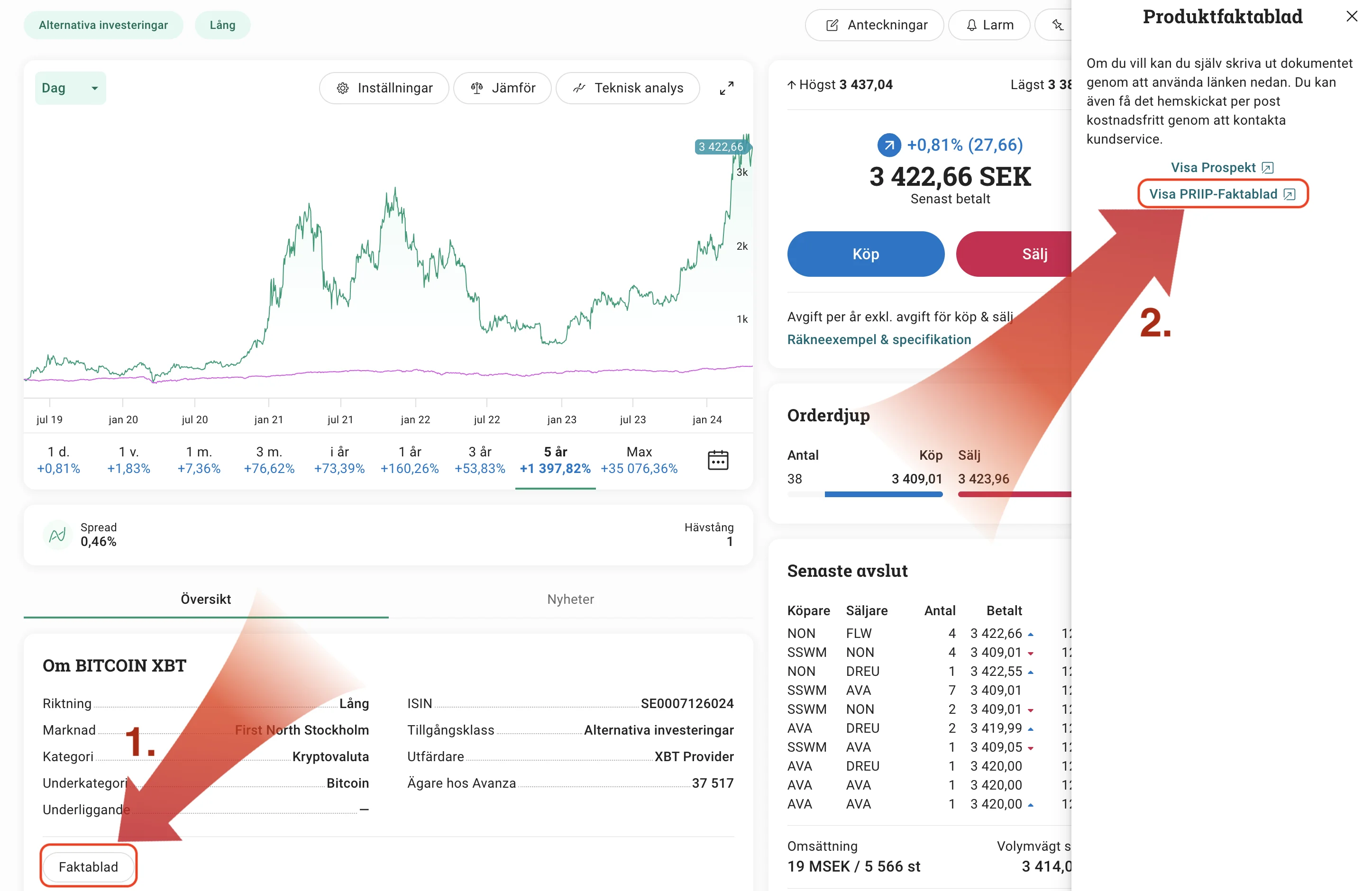 Bitcoin XBT faktablad Avanza: