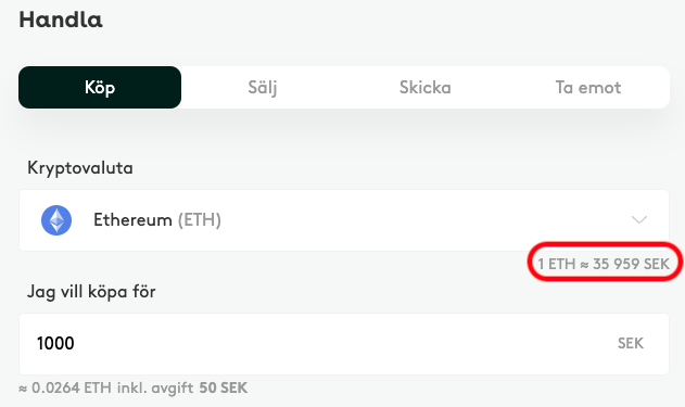 OBS: Viktigt att känna till är att det kan bli dyrare att handla ethereum i lokal valuta. Det kan nämligen tillkomma dolda avgifter som gör att priset kan bi dyrare, trots att det inte påverkats av det internationella marknadspriset.