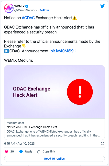 Denna attack innebar att kryptovalutor till ett totalt värde av 500 miljoner USD stals från investerare som hade förvarat sina tillgångar hos Binance. Som en konsekvens valde Binance att tillfälligt neka sina användare från att kunna genomföra transaktioner via deras handelsplattform.