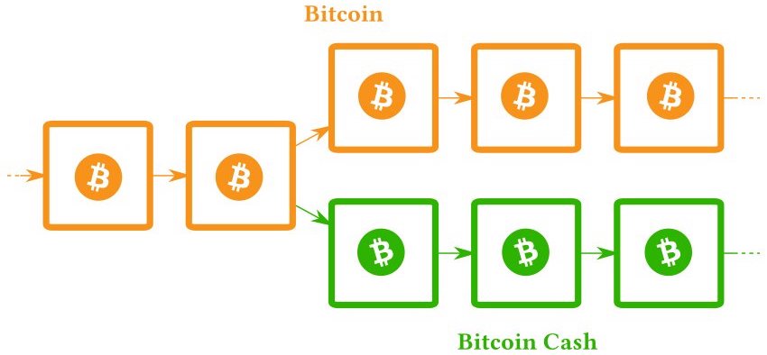 Hardforken skedde år 2017. Det innebar att den gamla och nya kryptovalutan därmed blev helt separerade från varandra. Transaktioner som hädanefter gjordes skulle bli unika för respektive blockkedja.