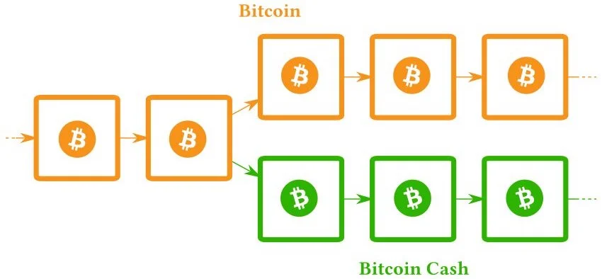 Bitcoin Cash (BCH) är en så kallad “hard fork” av Bitcoin (BTC). Begreppet “Hard fork” syftar till att en ny blockkedja skapas som en avgrening från en tidigare blockkedja.