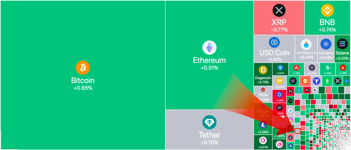 Bitcoin är dessutom den mest värderade kryptovaluta i världen. I början av 2024 handlades bitcoin till en kurs på kring 67 000 USD. Det gav kryptovalutan ett totalt marknadsvärde på 1,3 biljoner USD.