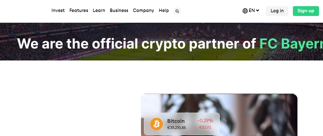 När du är på ”Dashboard” visas ”Crypto” som ett alternativ till vänster på skärmen. Genom att klicka på ”Crypto” alternativt ”Finance” uppe i menyn kommer du till sidan där investeringar kan genomföras.