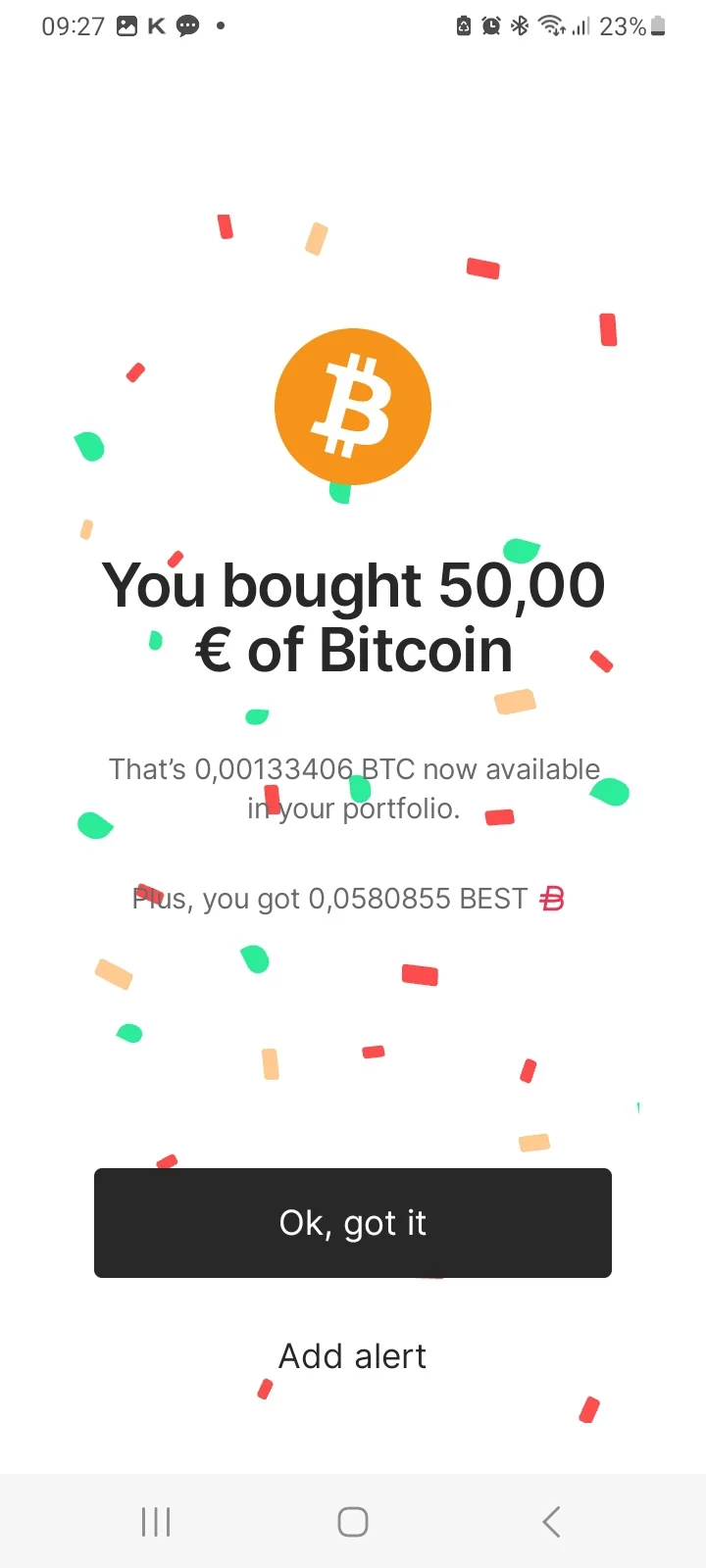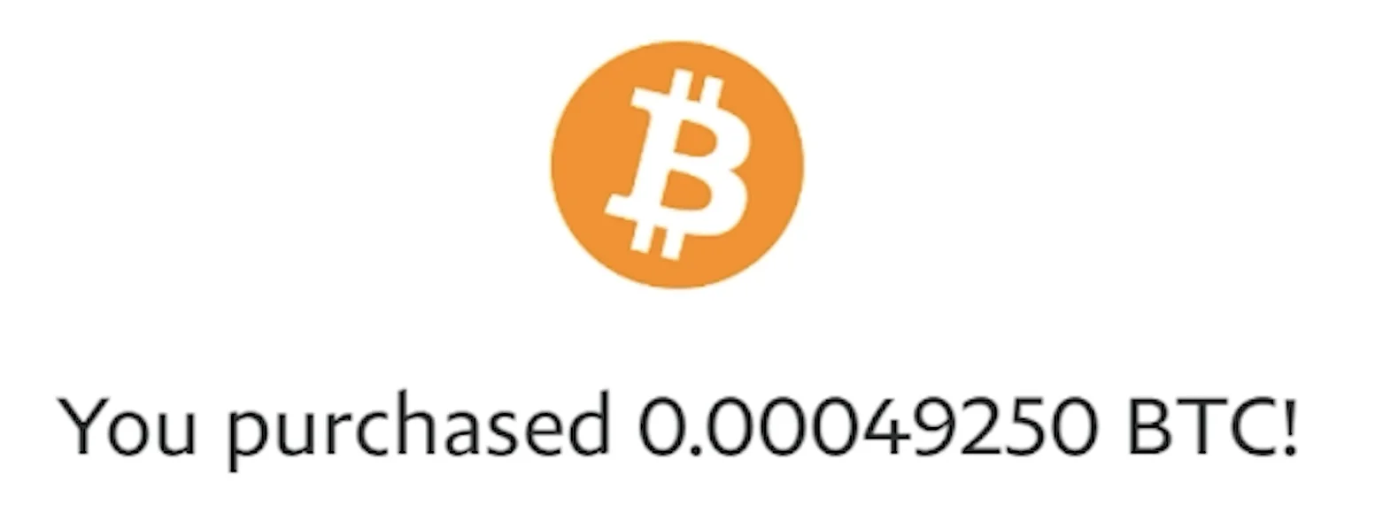 Klart! – Nu har du köpt Bitcoin på PayPals plattform, vilket även verifieras med en notis på skärmen.