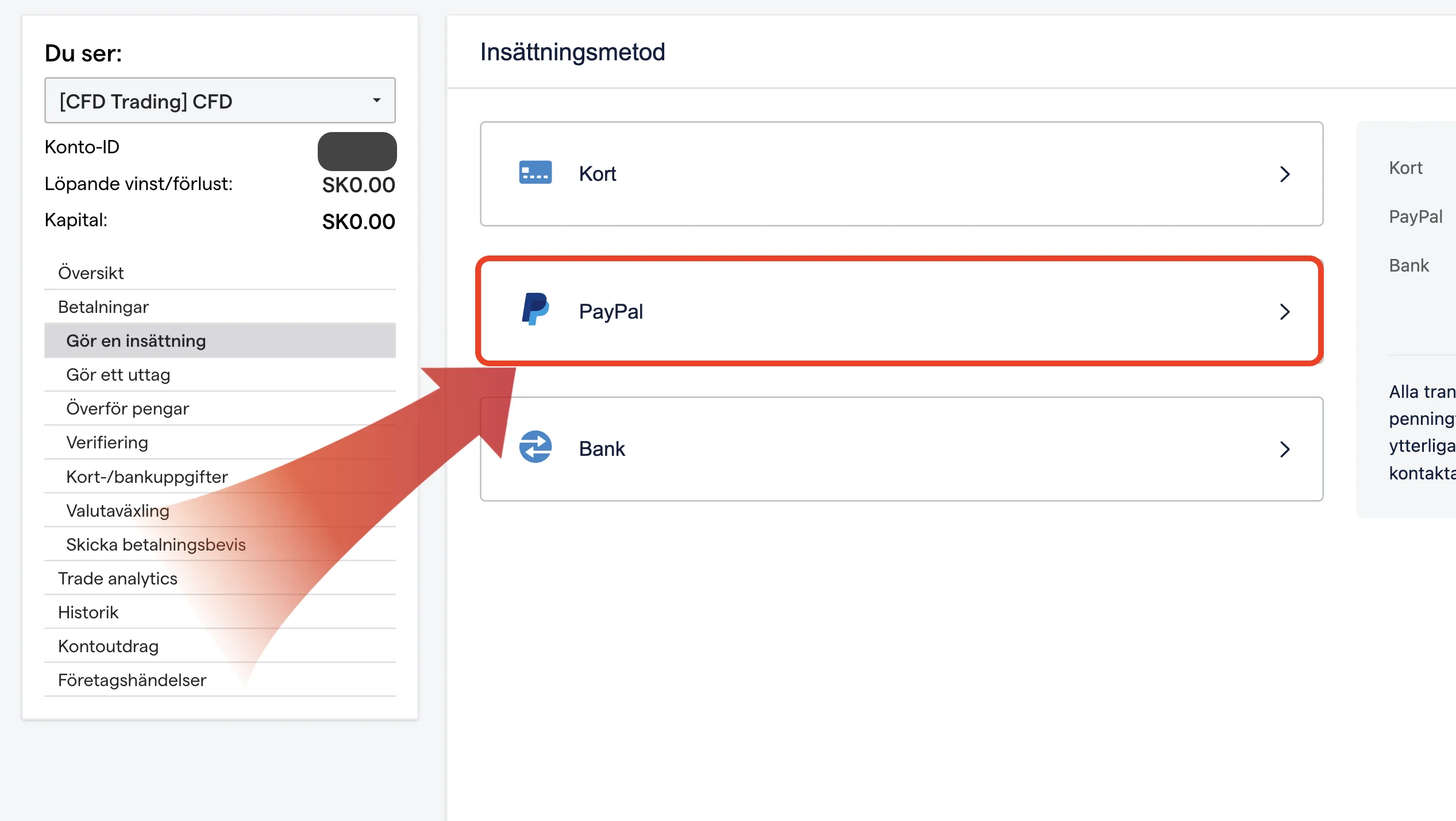 2. Sätt in pengar via PayPal