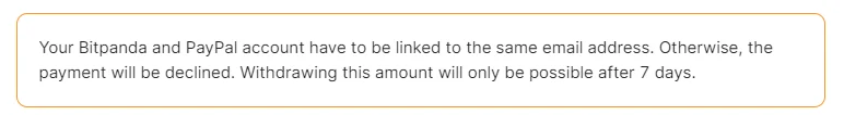 Det innebär att du enbart kan överföra pengar från ett PayPal-konto, till en kryptobörs, om dessa två konton är registrerade på samma person. Genom denna regel kan ingen annan sätta in pengar på ditt konto.