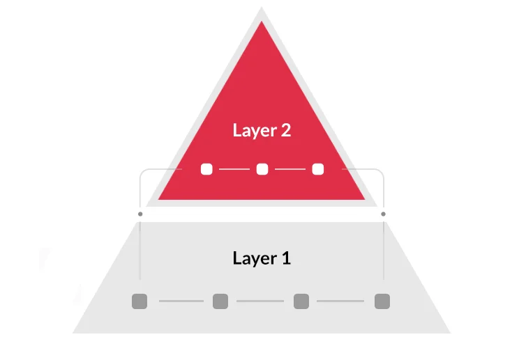 Layer 2 Solution är ett sätt för blockkedjor att kunna öka deras skalbarhet. Istället för att den primära blockkedjan ska ta hand om allt arbete så delegeras en del av det till Layer 2. Protokollet arbetar alltså ”uppe på” den primära blockkedjan. Detta tillåter för: