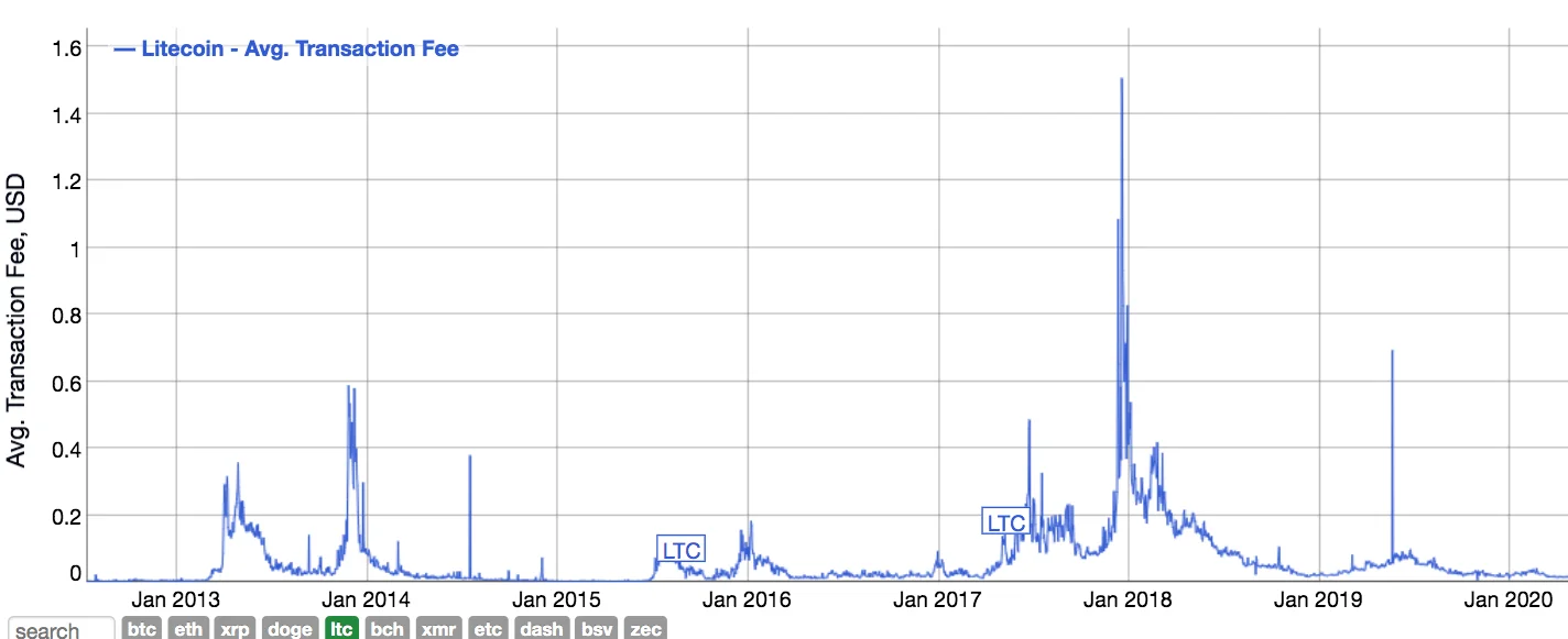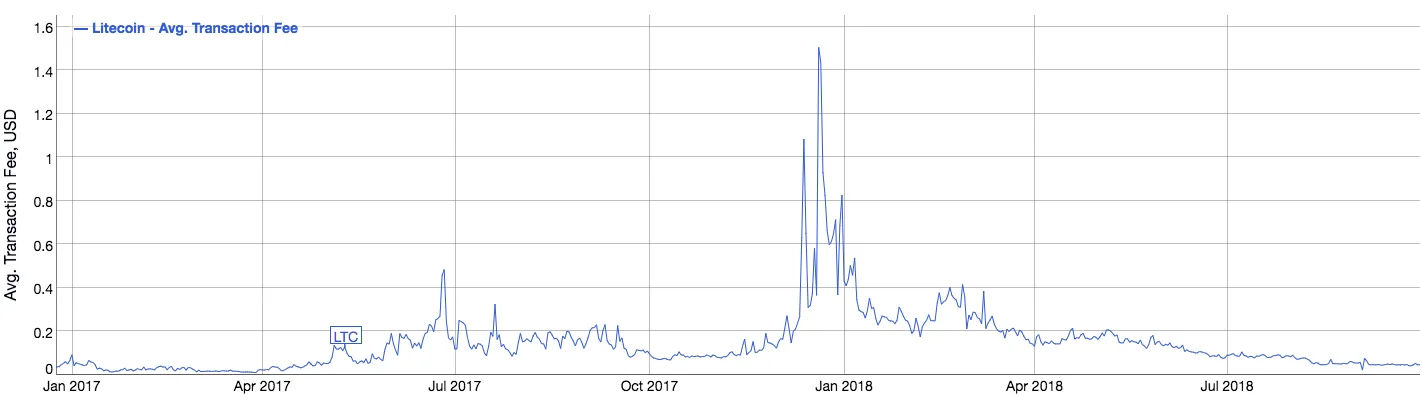 Litecoin genomsnittlig transaktionsavgift:
