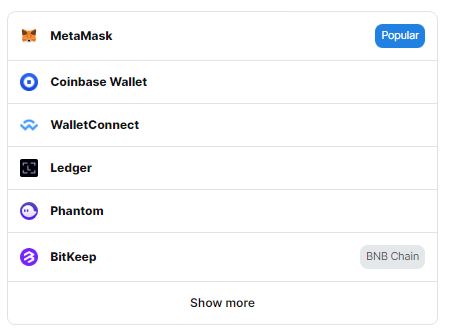 - Anslutning via kryptoplånbok – Andra spel kräver anslutning till kryptoplånbok. Det vanligaste är då att valbara plånböcker presenteras när personen går in på webbplatsen.