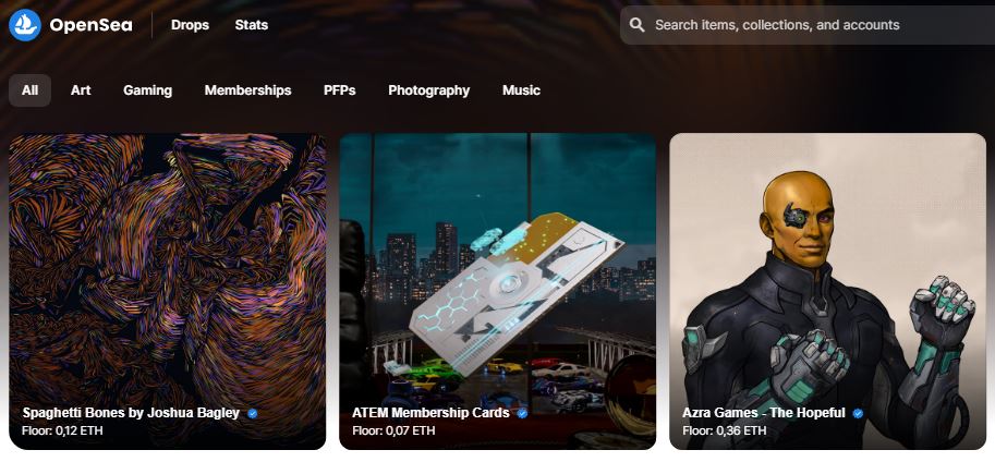 OpenSea är en av världens största NFT-plattformar. Några av de större kategorierna av NFT:er som finns är inom gaming, konst, musik och medlemskap. För att kunna köpa krävs en kompatibel kryptoplånbok, exempelvis MetaMask.
