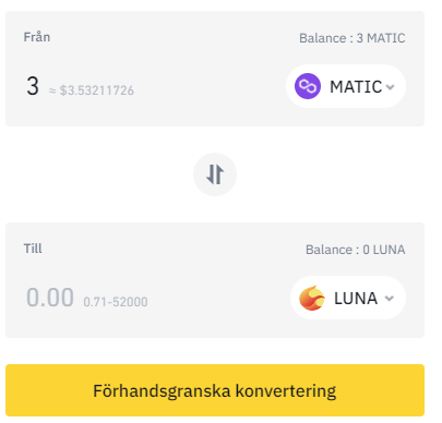 Här visas hur du kan köpa Matic på svenska kryptobörsen Trijo och därefter växla dessa till Terra Luna Classic via en kryptoplånbok.