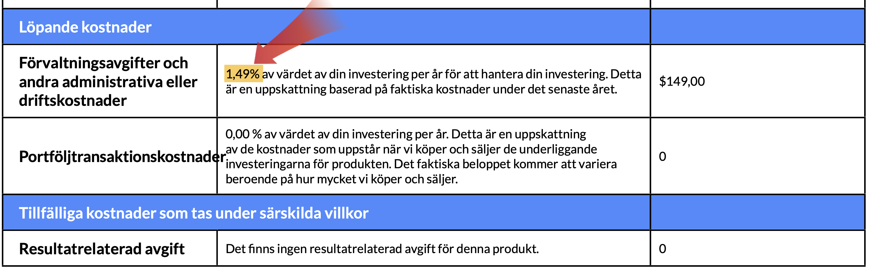 *OBS: Förvaltningsavgiften är en årlig avgift. Det kan också finnas andra kostnader som tillkommer utöver förvaltningsavgiften. En fullständig beskrivning av alla kostnader finns i kapitel 8.