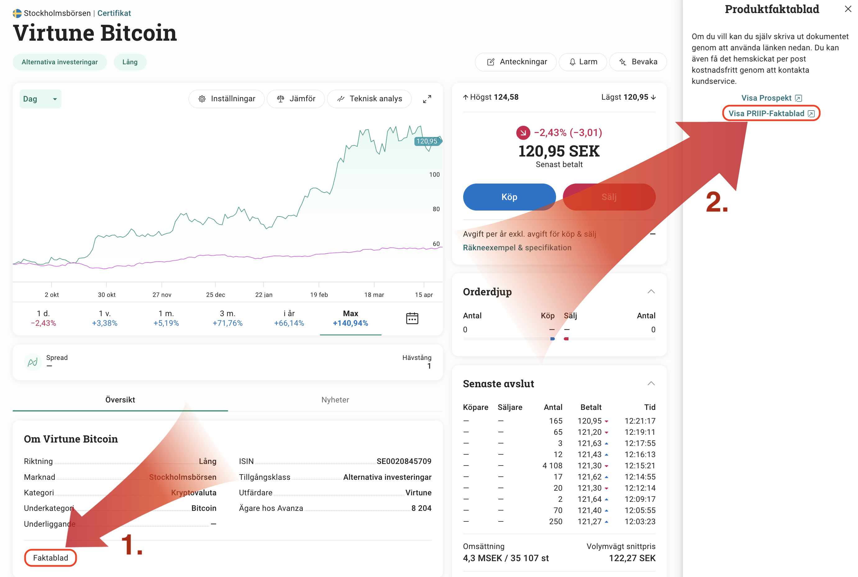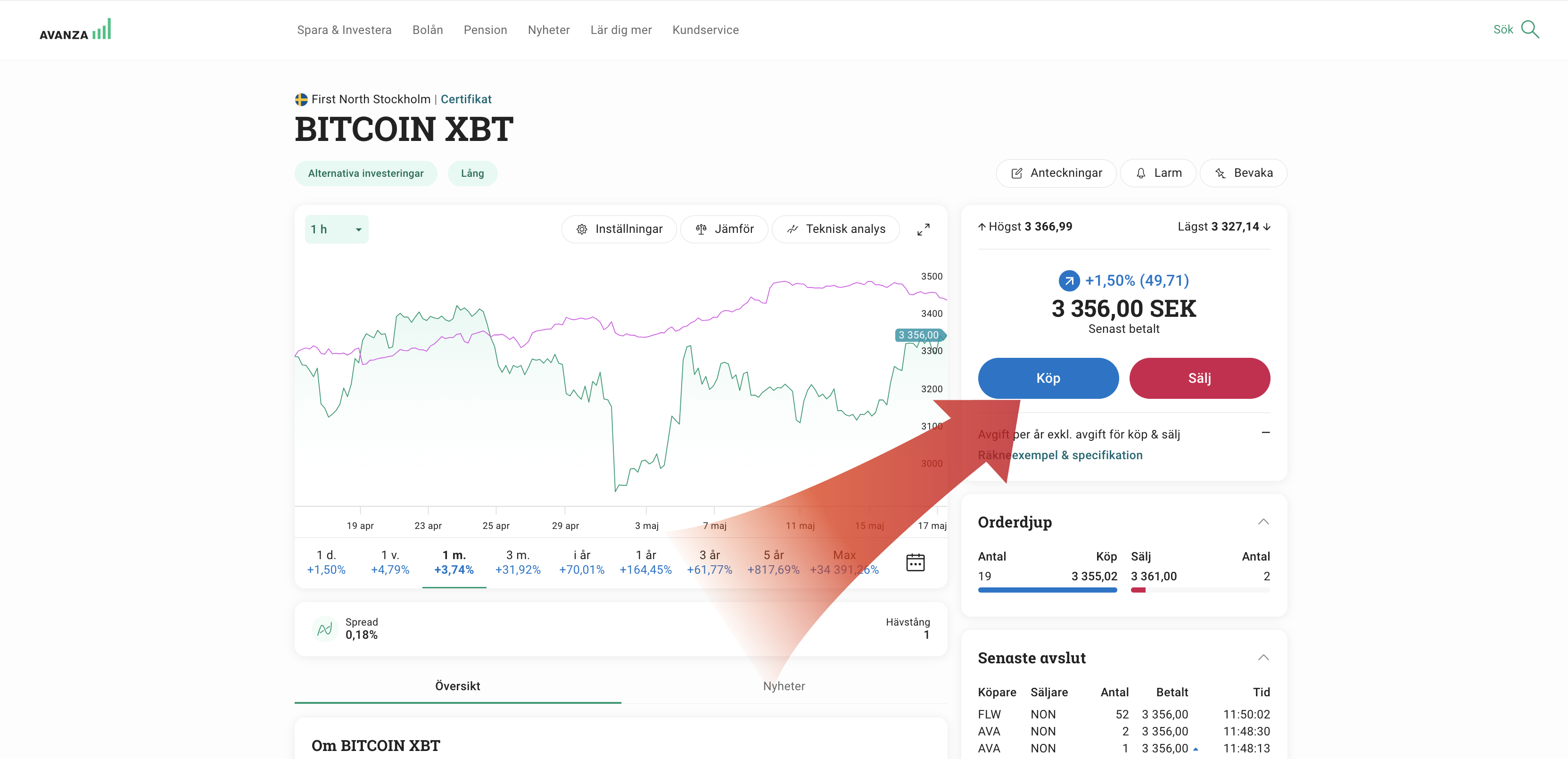 Funderar du på att investera i detta certifikat? Bitcoin XBT finns att handla hos Avanza.