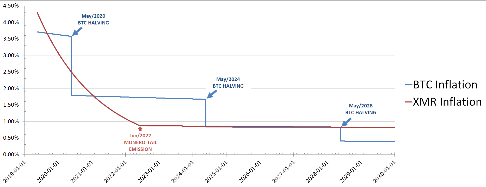 BTC vs XMR inflationstakt: