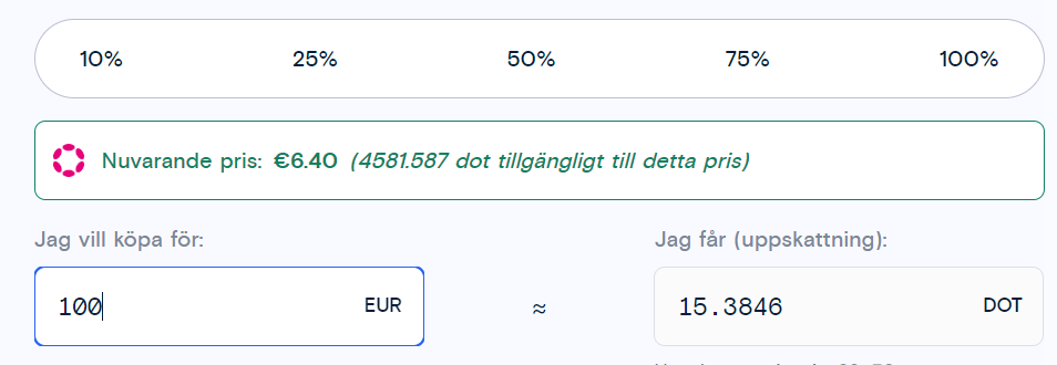 - Rösträtt – Polkadot utvecklas ständigt och de som låser DOT (kallas för staking) har rätten att rösta på framtida förändringar, uppdateringar samt andra projekt som gynnar blockkedjan. Ju fler DOT en person har desto tyngre väger rösträtten.