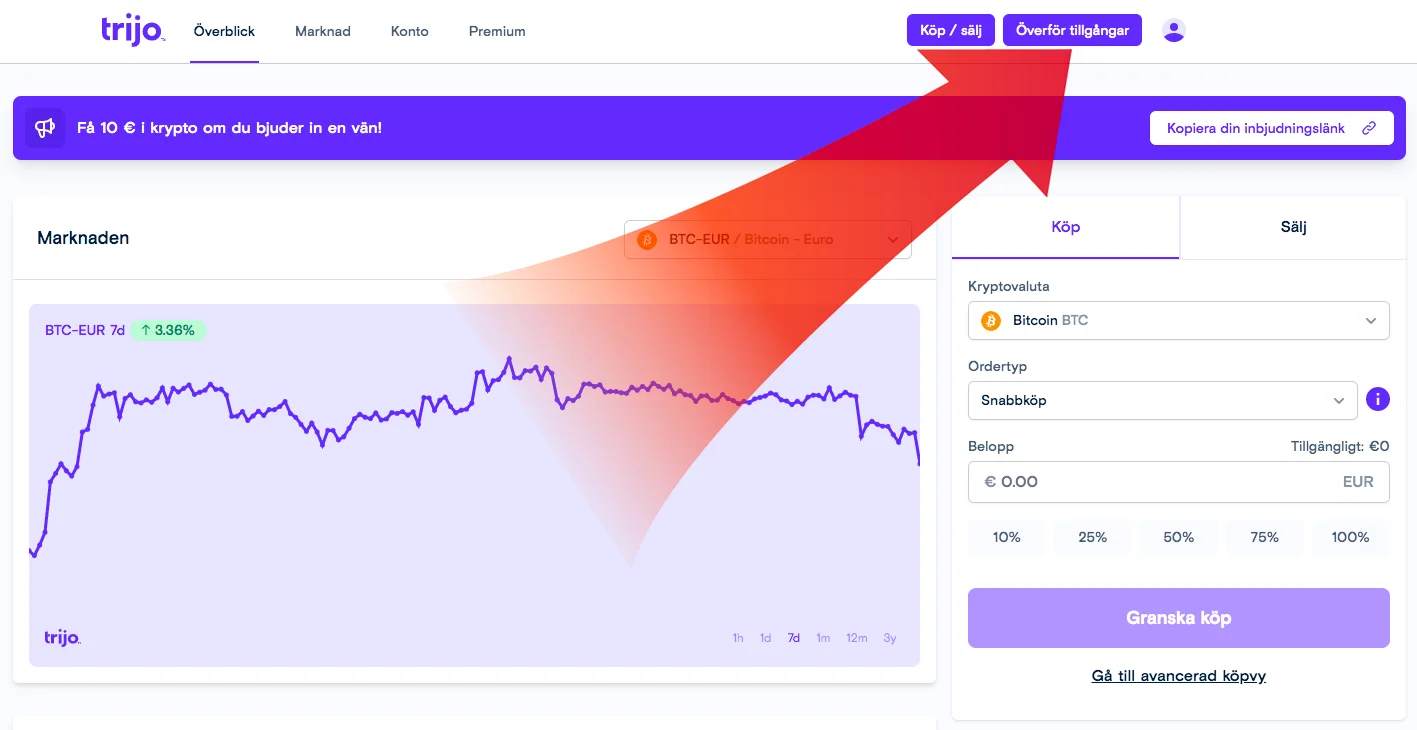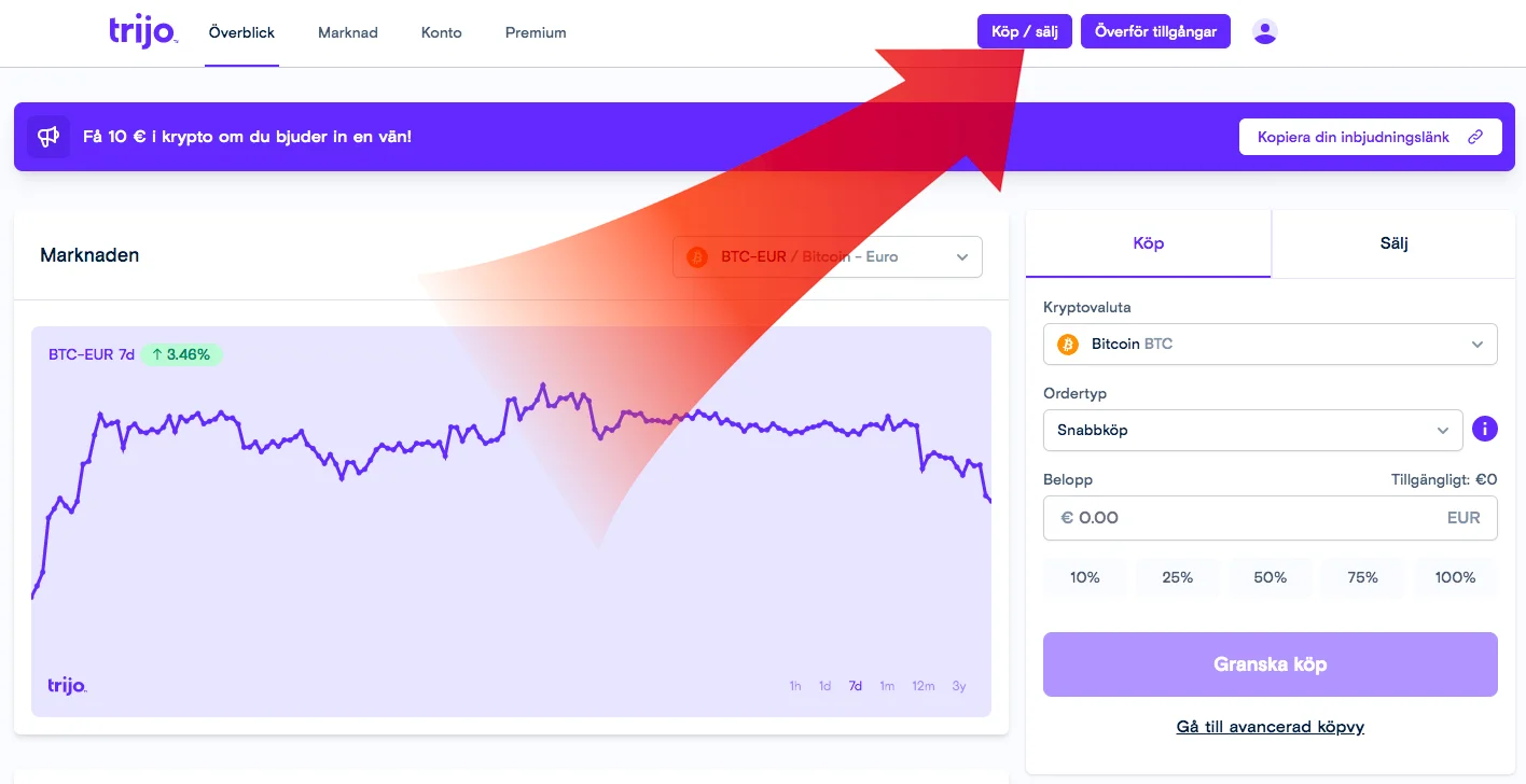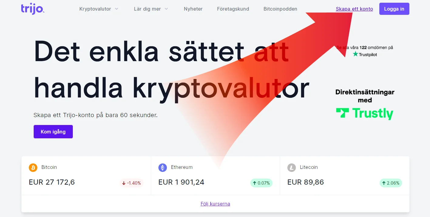 En svensk kryptomäklare som erbjuder handel med kryptovalutor, sedan 2019, är Trijo. Det är en av de populäraste mäklarna på vår webbplats och i Svergie. Nedan kan du läsa steg-för-steg hur du öppnar dig ett konto och kan börja köpa bitcoin.
