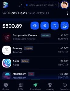 För att kunna publicera och använda en parachain krävs att en större mängd DOT låses inom staking. De som kan låsa mest kapital får tillgång till kedjan. De som inte har tillräckligt med eget kapital kan finansiera via så kallade crowdloans.
