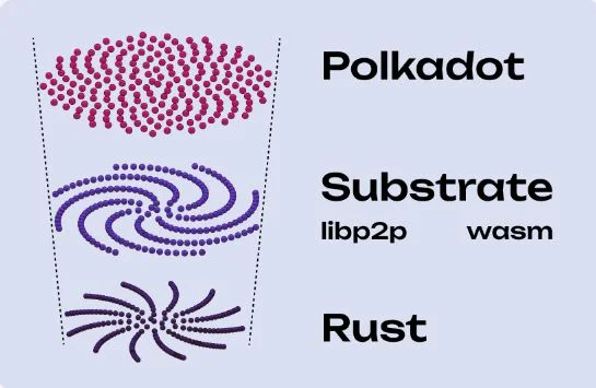 Polkadot är programmerad i prommeringsspråket Rust. Detta i likhet med exempelvis blockkedjorna Solana, Near Protocol och Hyperledger.