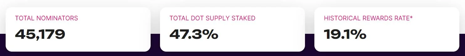 På Polkadots hemsida finns aktuella siffror kring exempelvis antalet validators och nominators. Dessutom går det att se hur stor andel av alla DOT som är låsta inom staking och därmed kan användas för denna valideringsfunktion.