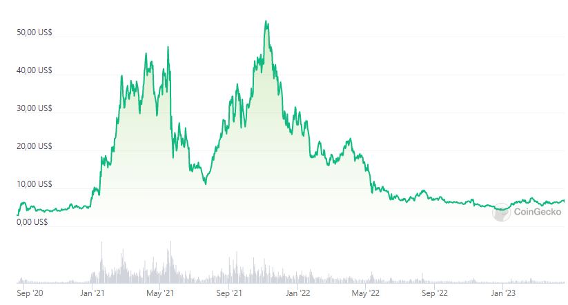- Konstant inflation – DOT har en konstant inflation på 10 %. Det innebär att utbudet ökar med en relativt hög procentsats varje år. Förutsatt att marknaden inte efterfrågar det större utbudet kommer priset att pressas nedåt. Det är i sig negativt för utvecklingen av Polkadot då utvecklingen till viss del finansieras av Polkadot Treasure som består av DOT.