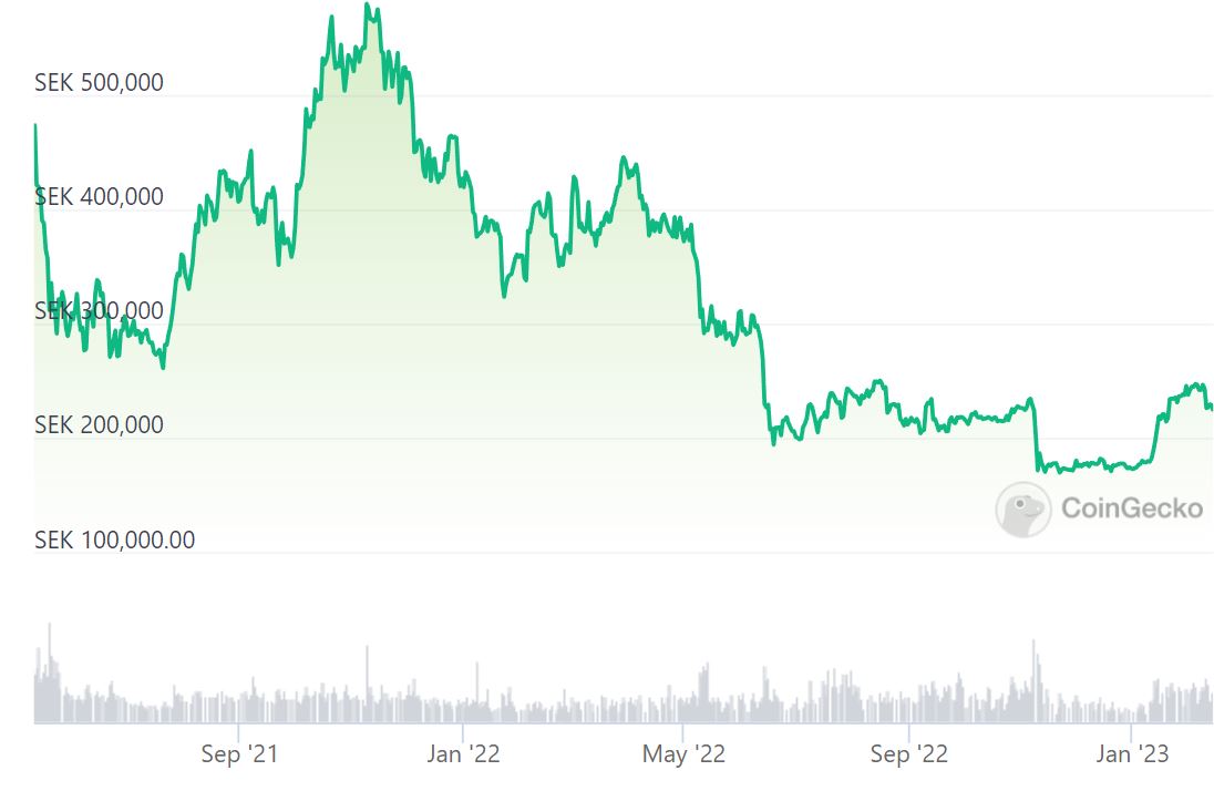 De som investerade tidigt fick snabbt en otrolig stor avkastning. I april 2019 var värdet 0,05 SEK och 2,5 år senare var kursen som högst på ca 25 SEK. En värdeökning på x500. De som investerade allra först, och sålde på 25 kr, fick x30 000 på sin investering!