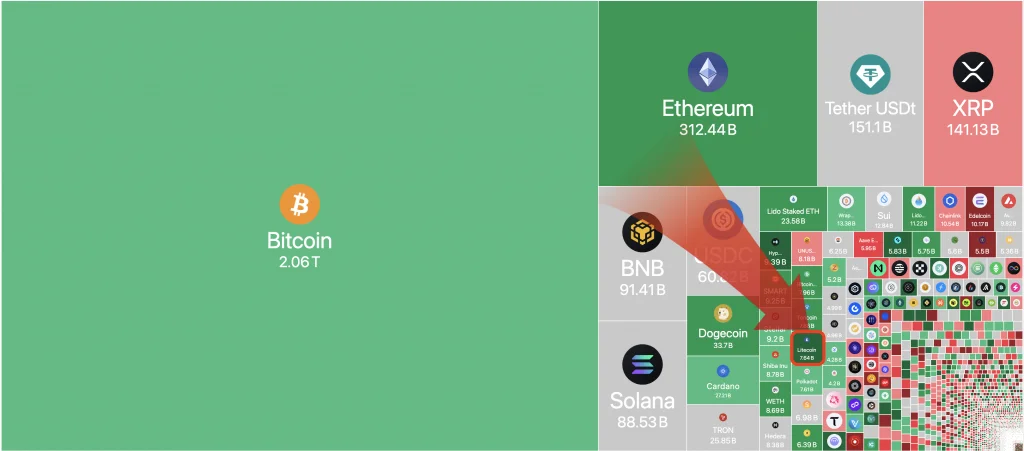 I mitten v 2025, låg Bitcoins market cap på strax över 2 biljoner USD. Litecoins market cap låg samtidigt på över 7 miljarder USD.