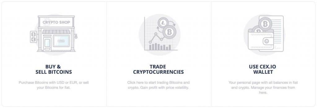 - Många betalningsmetoder: Det finns många olika betalningssätt att välja mellan på handelsplatsen. Du kan köpa bitcoin med VISA/MasterCard, banköverföring (SWIFT och SEPA) eller med andra kryptovalutor. CEX.io är en av få handelsplatser som erbjuder köp av bitcoin/ether med bankkort. Dessutom kan du göra uttag direkt till ditt bankkort.