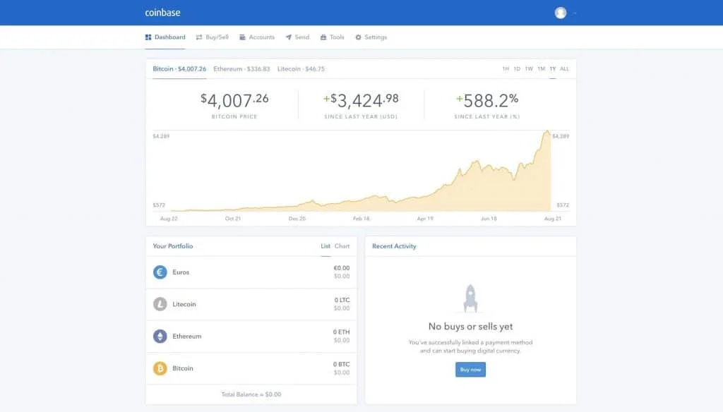 Coinbase har en stilren design och gränsnitt som gör det enkelt för nybörjare att köpa bitcoin. Företaget har fokuserat på användare som vill köpa kryptovalutor för första gången. Det är tydligt när man använder deras plattform som är enkel att använda och förstå. Du kan skapa ett obegränsat antal plånböcker och du kan köpa kryptovalutor omedelbart med ditt bankkort. I slutet av recensionen har vi gjort en guide om hur man köper Bitcoin på deras webbplats.